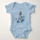 Alice, uma adorável vintage, a menina forma o livro Alice no País das Maravilhas em preto e branco e seu vestido azul familiar aparece com ramos de azul e rosa esquecendo-me-não floresce nesta divertida e nostálgica roupa de bebê de uma peça só. Escolha a cor de fundo de sua escolha, como preto, azul ou rosa. Itens correspondentes e outras designs da Alice no País das Maravilhas estão disponíveis na minha loja Zazzle.