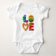 Celebre a época do amor com este belo casaco de bebê. A design do 'AMOR' é enfeitada com elementos temáticos de Natal como uma árvore, ornamentos, e um doce coração de pão de gengibre...Amor Natal.