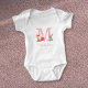 Body de bebê com monograma inicial de animais da floresta fofa, com o nome da criança, com dois pequenos animais da floresta sentados de cada lado da inicial do monograma, um filhote de raposa e um coelho doce. Um presente perfeito para guardar! Criado por Thisisnotme