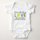 Traje simples personalizado para bebês com um "We'are já in Love - Baby Arrives by", imprimindo em caracteres bonitos de script de caligrafia e texto em negrito que aparecerá em fotos para um anúncio de gravidez único para jogadores de tênis, profissionais, treinadores ou gerentes de clubes.