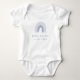 Este body de anúncio de gravidez em arco-íris boho para menino da Coleção Rowan é perfeito para um chá de bebê simples e para fotos de anúncio de bebê. Este design minimalista fofo apresenta um arco-íris único em azul claro pálido e branco e é perfeito para a primavera ou verão.
