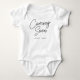 Celebre e anuncie a chegada iminente de um pequeno com um toque especial — este body personalizado "chegando em breve" é a maneira perfeita de celebrar uma família em crescimento. Este babygrow personalizado apresenta o mês e o ano da data prevista para o nascimento do bebê e é impresso em um design moderno e limpo. Ideal como presente de baby shower, roupa de anúncio de recém-nascido ou lembrança para guardar por anos.