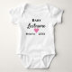 Um bebê bonito que é personalizado com o sobrenome, e data de vencimento com um coração rosa.