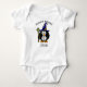Este belo casaco do feiticeiro de pinguim é uma adorável adição ao armário de peitoril do bebê. Imagem do pinguim do assistente e completamente personalizável com o nome da criança.