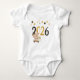Celebrate your baby’s first New Year in style with this adorable 2026 teddy bear bodysuit. Featuring a cute sleepy bear holding a clock, elegant gold numbers, and festive ornaments on a black background, this design is perfect for New Year celebrations, photoshoots, and special memories. Soft, comfortable, and ideal for newborns and toddlers, it also makes a lovely New Year baby gift.