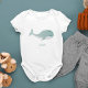 Esta baleia adorável adiciona um toque divertido a este macacão. Adicione um nome ou outro texto para um toque personalizado, ou remova, de acordo com sua preferência. Faz um presente personalizado excelente para um chá de fraldas! Também disponível como uma camisa de criança.