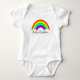 Vibrante arco-íris colorido com uma nuvem branca fofa em cada ponta. Um modelo através das nuvens com a leitura Bebê Arco-íris em texto preto pode ser usado como está, substituído pelo seu próprio texto ou simplesmente excluído para deixar em branco.