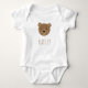 Uma ilustração de urso adorável toma o palco central nesta design bonita e moderna. Núcleo de gênero. É fácil personalizar com o nome do bebê.