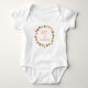 Um design moderno e chic para o pequeno vestir pela sua primeira ação de graças. Ela tem uma coroa feita de folhas de outono, vinhas e bolotas com o texto que diz "Ação de Graças de 1rua de Bebê". Você pode personalizar com o nome ou a própria mensagem da criança.