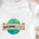 Apresentando tipografia de pincel e um gráfico animado fofo da terra, este design apresenta o texto "Bem-vindo ao pequeno mundo". Este adorável design faz um presente excelente para um bebê ou chá de fraldas recém-nascido.