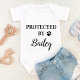 Protegido por, Segurança Canina ! Deixe todos saberem qual é o melhor cão e o novo guarda-costas na casa acolhedora do seu novo bebê com esta roupa de bebê engraçada para cães. “Protegido por...o nome do seu cão" com pegada de pata. Presente perfeito para o chá de bebê para uma mãe de cachorro, este body de bebê para amantes de cães será o favorito! DIREITOS AUTORAIS © 2020 Judy Burrows, Black Dog Art - Todos os Direitos Reservados. DIREITOS AUTORAIS © 2020 Judy Burrows, Black Dog Art - Todos os Direitos Reservados. Body Personalizado Protegido por Cão para Bebê