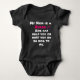 O bodysuit branco e a parte dianteira têm "minha mamã são uma enfermeira. Pode ajudá-lo ou para feri-lo seja assim agradável a mim" nas letras brancas.