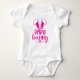 Este bonitinho traje de bebê contém texto rosa "Bunny Bebê" com orelhas coelhinhas. Perfeito para o feriado de Páscoa.