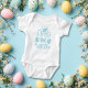 Este macacão-bebê apresenta a imagem de texto azul "First Time Hunter" com ovos de Páscoa. Perfeito para a primeira Páscoa do seu bebê.