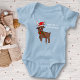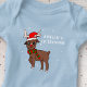 Cute Deer Drawing Baby's 1rua de Natal. Veado com Santa Hat e floco de neve no nariz. Adicione seu nome e texto.