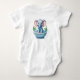 Bebê de roupa de bebê, ideal para chás de fraldas, exibindo orgulho e alegria para o novo filho.