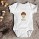 Procurando por um presente de nascimento, este traje de bebê com uma ilustração de um cogumelo bonitinho no estilo Kawaii e um texto personalizável abaixo poderia ser perfeito.