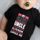 Um traje de bebê com o ditado "Meu tio excelente me ama com nome personalizado" é uma roupa doce e carinhosa de criança. O ditado expressa o profundo amor e afeto que uma tia-avó tem por sua sobrinha ou sobrinho. A frase "para a lua e para trás" é uma expressão popular usada para transmitir a magnitude do amor que se sente por outra pessoa. O traje de bebê com este ditado é uma maneira emocionante e sentimental de expressar amor e afeto por um pequeno. É uma escolha excelente para o tio excelente que quer mostrar à sua sobrinha ou sobrinho o quanto eles amam e se importam com eles.