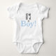 Celebre a chegada de um pequeno com este "É um Rapaz!" Bebê Onsie. Este design apresenta o texto É um menino em letras preto e azul bebê.