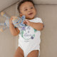 Ele é Risen. Uma bela roupa de bebê Páscoa religiosa com uma bela coroa floral de roxo e verde. Estas lindas flores aquáticas se regozijam com Jesus Cristo. Bonito dom cristão monograma.