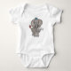 Uma doce ilustração de um elefante e bebê. O bebê está segurando um cupcake coberto de aspersores e ambos estão vestindo coroas.