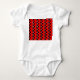 Este macacão-bebê tem uma design moderna do século médio de ovais negros com círculos brancos ligados por linhas brancas num campo de vermelho. Quer cores diferentes? Me mande mensagem.