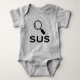 Este bebê parece meio que um pouco. Vestir o seu pequeno numa explosão de humor com este adorável gravador com o texto ousado "SUS" e um gráfico de lupa. Perfeito para pais que amam memes, casais de jogos, ou qualquer pessoa que pense que os olhos laterais do seu bebê dizem tudo. Suave, confortável e desconfiadamente fofo — esse traje corporal faz o presente perfeito para o chá de fraldas ou a risada do dia a dia. #SUSBaby #FunnyBabyWear #SuspeitoMasCute #EntreNósVibes #MemeBaby #SarcasticStyle #BabyHumor #GamingBaby #SusAndStylish #GiftIdeas #CuteOutfits #SarendestiniDesigns #ZazzleBaby #GamerMãe #Trendy Tots