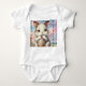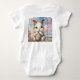 Este body de bebê vai ficar lindo no seu filho ou neto coelho simples com um ovo colorido com nuvens azuis e rosas grama verde. Você pode personalizar com o nome dele