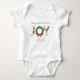 Modern traditional Christmas JOY floral script typography lettering with red holly berries, fir branches wreath, and a red bow making a pretty First Christmas custom gift for a newborn baby!