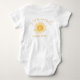 Are you planning a girl's first birthday party? This cute baby bodysuit is decorated with a yellow watercolor smiling sun and features the phrase "First Trip Around the Sun" in stylish script typography. Easily customizable with the birthday boy's name. Original Watercolor © Michele Davies.