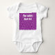 Este macacão-bebê tem um design de diamantes Art Deco ligado por linhas curvas em branco num campo de roxo. Mantenha o texto, altere-o ou elimine-o completamente.