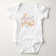 Groovy Baby! Este macacão de bebê rosa é perfeito para uma festa de aniversário temática hippie, retrô ou dos anos 70, ou para o dia a dia. Com o seu texto estilo anos 70 e ondas coloridas rosa pastel, é divertido e caprichoso, como uma doce menina.