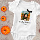 Minha primeira roupa de bebê fotográfica do Halloween. Foto e texto personalizados de um bebê em um roteiro de tendências. Personalize-o com a foto e o ano do seu bebê. Uma adorável festa de Halloween.