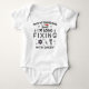 Este design apresenta a citação "Pack My Fralda Bag, I'm Fixing With Pai" além de ícones de ferramentas de reparo. Ele também pode ser personalizado para atender às suas necessidades. É um presente perfeito para o bebê de um mecânico.
