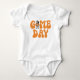 Vestir seu fã para a temporada de futebol com esta adorável t-shirt de bebês do "Dia do Jogo"! Apresentando uma ousada inscrição laranja no estilo retrô e uma mascote lúdica de cachorro vestindo uma camisa de equipe, esta design traz o espírito da equipe grande de uma forma fofa e confortável. Soft, durável e perfeito para pele sensível, é um equipamento de excelente para personagens, festas de relógios familiares, ou mostrar orgulho de equipe no dia do jogo. Um presente divertido para as famílias que amam o futebol e os fãs mais jovens!