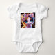 Um design caprichoso e adorável de Bodysuit de Bebê apresentando um gato fofo adornado com uma coroa de flores colorida contra um céu noturno estrelado. O design lúdico e as cores suaves criam uma atmosfera mágica e encantadora.