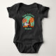 Belo traje de bebê do Halloween, com um gnomo, fantasma, abóboras e árvores de queda com lua verde no fundo. O texto do traje é personalizável.