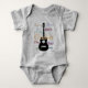 HAMbyWhiteGlove desenhou camiseta com gráfico de guitarra preta e modelos que você pode adicionar seu nome ou deixar as coisas de torta que escrevemos; "Guitar", "Rock on" "sing", "dance", "sorria", "abraço", "toca" e "brilha", guitarra," sobre isso! Muito divertido! Mostrada numa pequena camiseta preta, para a sua guitarra tocando bebê!