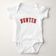 Verde escuro! Seu nome é Hunter? Ou você tem uma esposa, namorada, membro da família ou amiga feminina chamada Hunter? Se sim, esta camisa "Banner" é exatamente o presente que você está procurando! O design apresenta "Hunter" em caracteres vermelhos arquivados no peito, na fonte clássica da Faculdade.