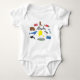 Um presente divertido para o novo bebê! Apresentando alguns de seus ícones favoritos do Alasca; botas, ursos pardos, Denali, salmão-de-sockeye, orcas, baleias-jubarte, caranguejos-rei-do-Alasca, puffins, nots-me-esqueço e a bandeira estadual do Alasca.