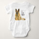 Ninguém pode cuidar do seu bebê mais do que o seu German shepherd Cão! Na frente desta camisa estão as palavras "Meu irmão mais velho" (não se esqueça de mudar o irmão se precisar que ele diga "irmã" simplesmente clicando no botão "personalizar") e no verso diz "é um German shepherd. E é claro, um retrato maravilhoso de um German shepherd Cachorro está na frente e atrás! Compartilhe o amor desta raça maravilhosa com o seu bebê e todos os seus pequenos amigos. Será a inveja da creche deles!