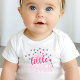 Celebre o seu novo membro da família com este adorável body de bebê “Irmãzinha”! Desenhado com texto rosa pastel suave, uma coroa de princesa e estrelas doces, este lindo conjunto de bebê é perfeito para anúncios de nascimento, sessões de fotos de bebês recém-nascidos, fotos de revelação de irmãos ou presentes para chá de bebê.