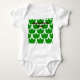 Este macacão-bebê tem um design escandinavo de trios de folhas se repetindo através do design em três tons de verde.