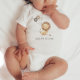 Um leão doce segurando 3 balões marrons. A roupa perfeita para a festa de primeiro aniversario do seu bebê! Os balões são de tons neutros, mas você também pode mudar a cor de cada um, se preferir. Você também pode alterar as letras 'ONE' ou apagá-las.