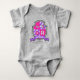 Terno do bebê do nome da arte do monograma da letra A da crista do protetor do estilo dos cavaleiros ou t-shirt dos miúdos perfeito para um bebê, um batismo ou um bebê novo nomeando o presente nas máscaras de cor-de-rosa, de roxo, o branco e o cinza. Personalize com nome da sua criança e o significado conhecido para personalizado, este exemplo é para o trabalho Industrious, duro conhecido de Amelia, inteligente e energético. Outros letras e significados conhecidos disponíveis ou para a ajuda por favor para contactar-me. Gráfico original da heráldica do protetor do desenho com uma tiara, um unicórnio, uma arte e um design da coroa por Sarah Trett. www.sarahtrett.com para www.mylittleeden.com