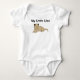 Este macacão apresenta um filhote de leão bebê, perfeito para adicionar um tema de vida selvagem safari à vida diária do seu bebê. Leões são um tipo de grande gato que vive na África. Muito fácil de editar ou sair como diz o texto "Meu Pequeno Leão".
