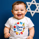 O bebê é o primeiro Rosh Hashanah. design com o desejo de Shana Tova. Fácil roupa para um bebê