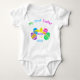 Um pintinho apenas chocou, e ovos coloridos em torno do pintinho com "minha primeira páscoa." Um grande presente do bebê para recordar a primeira páscoa para seu bebê.