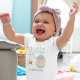 Esta bela primeira Páscoa de uma peça mostra o coelho da Páscoa pintando um ovo pastel junto com as palavras "Minha primeira Páscoa" e um espaço para o nome de seu filho. Todo o texto pode ser alterado, movido ou excluído.