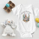 A Páscoa personalizada ideal presente para sua menina é este adorável coelho Páscoa em um jardim rural, relaxando na grama com flores e cogumelo. É totalmente personalizável adicionando o nome da sua filhinha na frente e atrás deste produto da "Minha Primeira Páscoa", que tem um design de Páscoa giro.